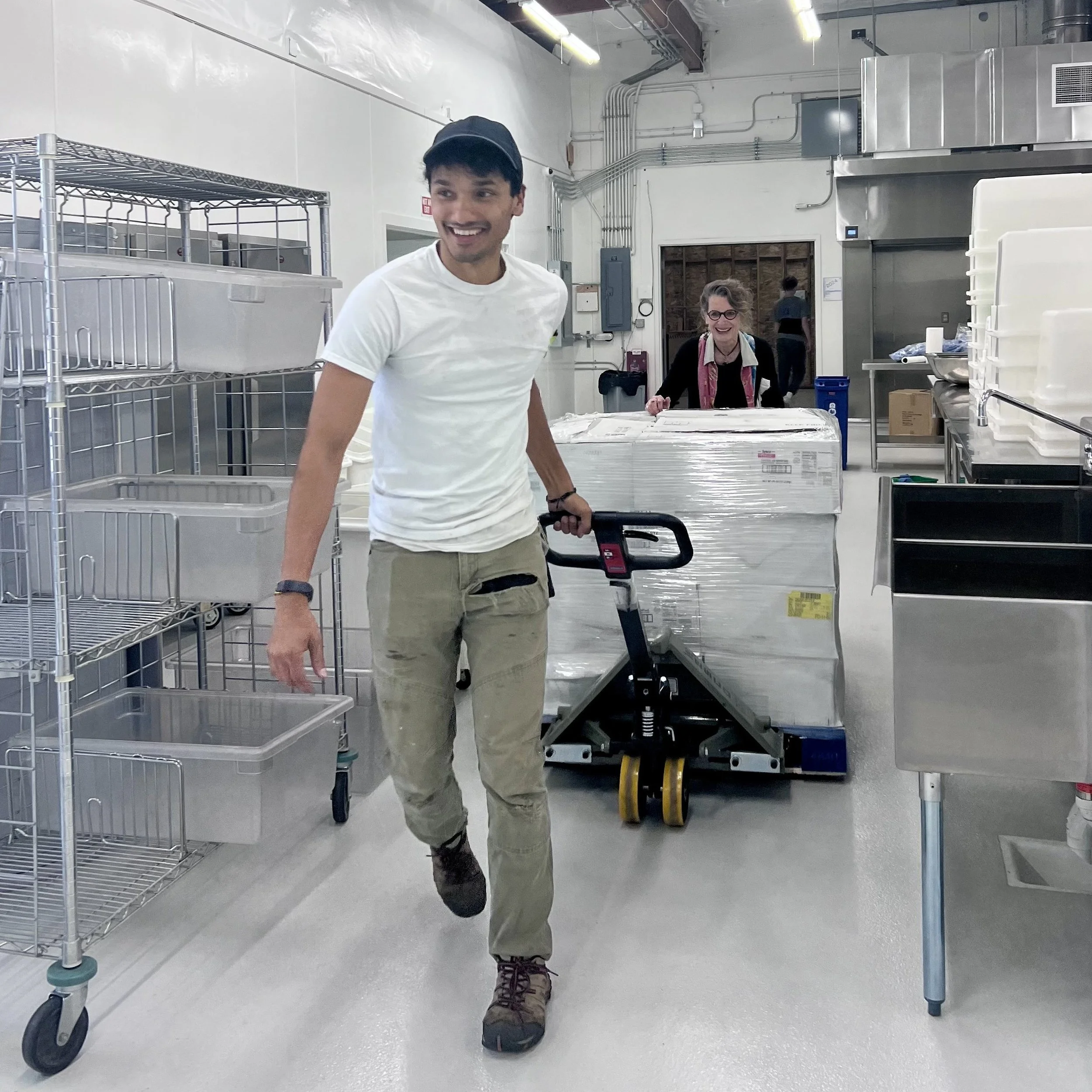 In 2024, we built our own state-of-the-art kitchen in the SODO district. After working for 35 years in hosted environments throughout King County, with hundred year old broken down equipment, we were able to complete renovations on a 13,000 square foot warehouse in Seattle, allowing us to do all our meal production in one enormous and fabulous commercial kitchen! With a 37 1/2 foot hood we are equipped to prepare 12,000+ meals each day! The build-out also includes frozen, cold, and dry storage for the emergency meal system throughout Seattle.
